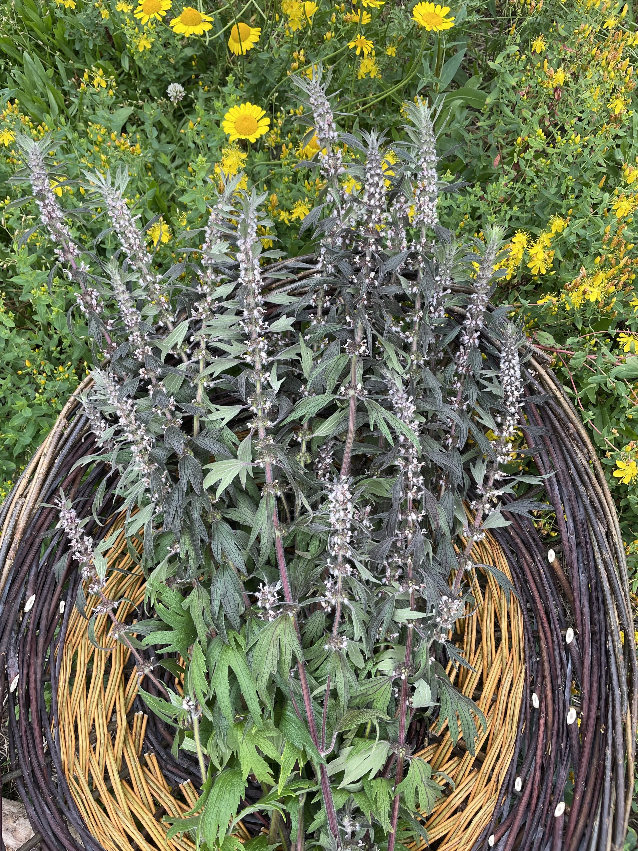 Since the plants are slow to spread, to get a good patch going in the garden, you’ll want to plant many plants 6”-1ft apart to form a nice dense patch. Only the flowering tops are harvested, so I would recommend planting around a dozen plants to have enough for your personal supplies for the year, or more if you wish to share the medicine with others.
